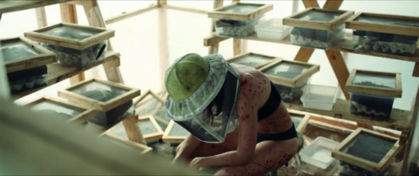 La Nuée raconte l’histoire d’une mère de famille célibataire qui veut sauver sa ferme de la faillite en élevant des sauterelles comestibles. Au fil du temps, elle va développer avec ces créatures un étrange lien obsessionnel. Le film a principalement été tourné dans le Puy-de-Dôme entre fin août et octobre 2019. Il est produit par Capricci Production et distribué par Capricci Films/The Jokers Films. Il sortira en salles le 4 novembre prochain.